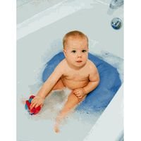 Safer Bather II has all of the practical features of our original Safer Bather, but is specially designed for growing infants who need a little sit-up support. No more suction cups or hard bath rings to thread baby through. Just soft cushioned support - made just for baby's bath! Very versitile for any comfy position. While your baby is on their back, their head can comfortably lie over the cushion to rinse out shampoo, or wash their face. Only available in blue with fish print.